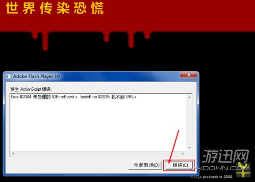 游戏启动说明玩家游戏时可能会出现以下错误弹窗提示“发生ActionScript错误:Error#2044 未处理的IOError。text=error #2035:找不到URL”