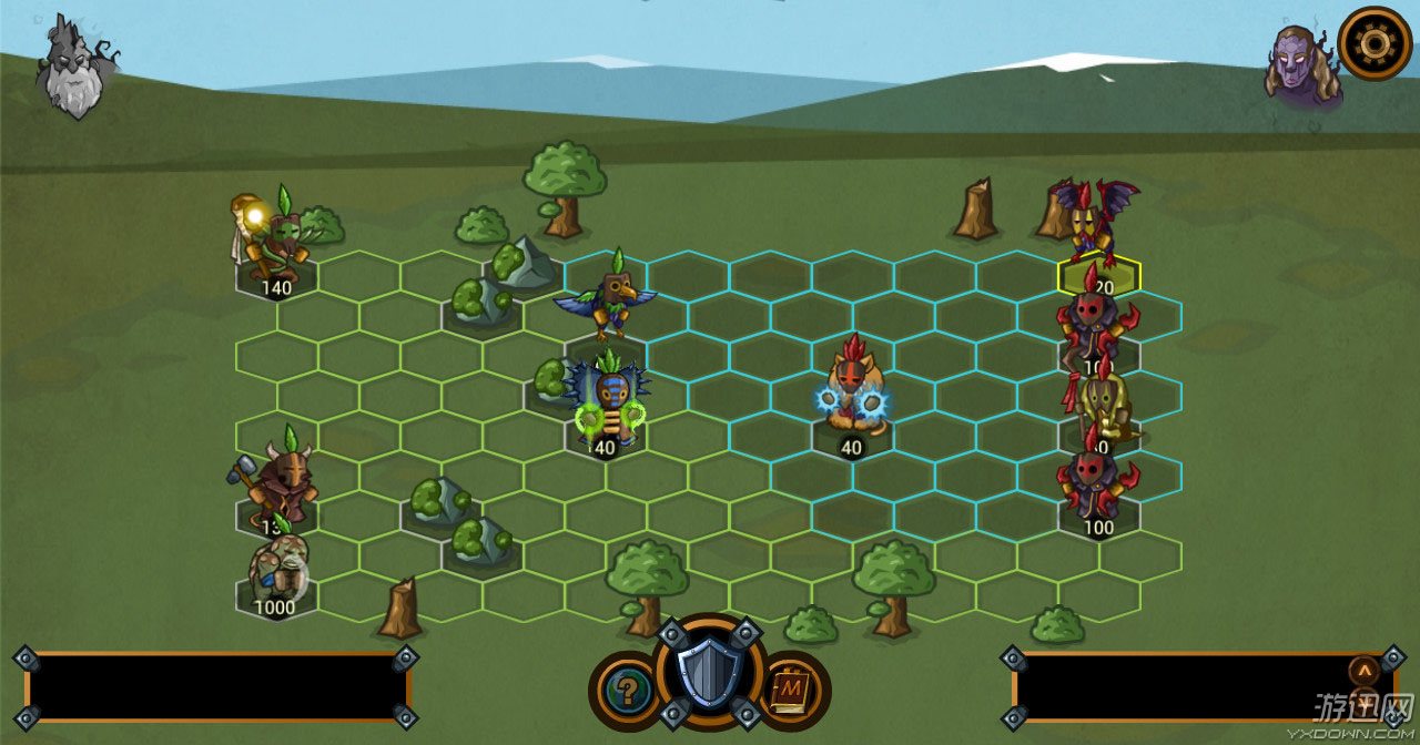 开局后,玩家先选取英雄,然后就可以开始战斗。初时你的军队就只有石头人而已,但随着关卡的深入以及金钱的积累,就可以招募更多不同的军队了。除了军队以外,英雄本身的技能和能力也是可以升级。